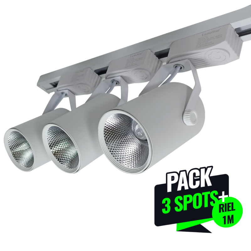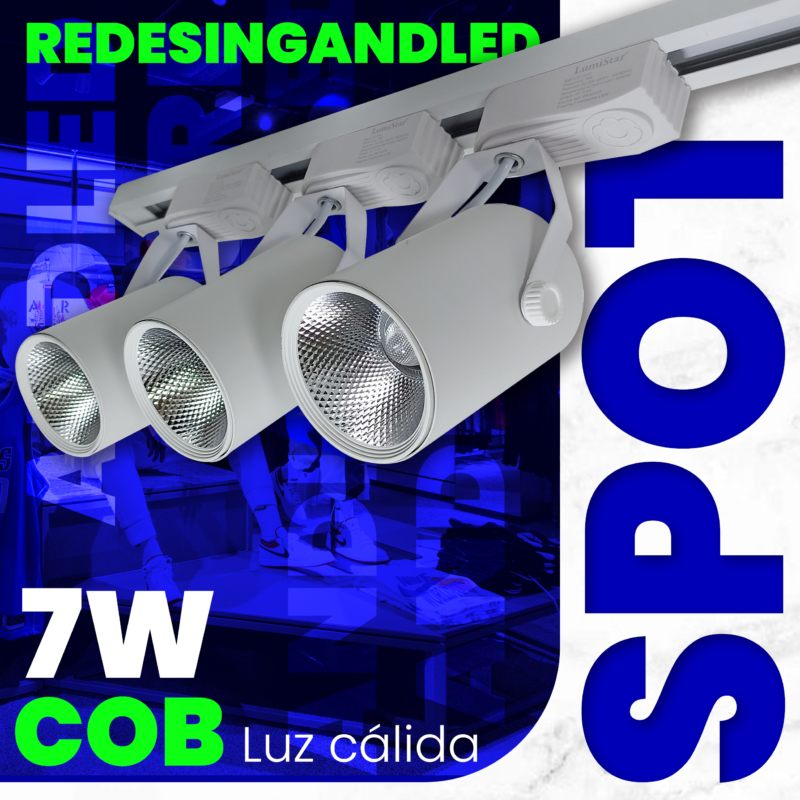 Lámpara Led 3 Spot Con Riel De 1m Blanco 7w Luz Calida.
