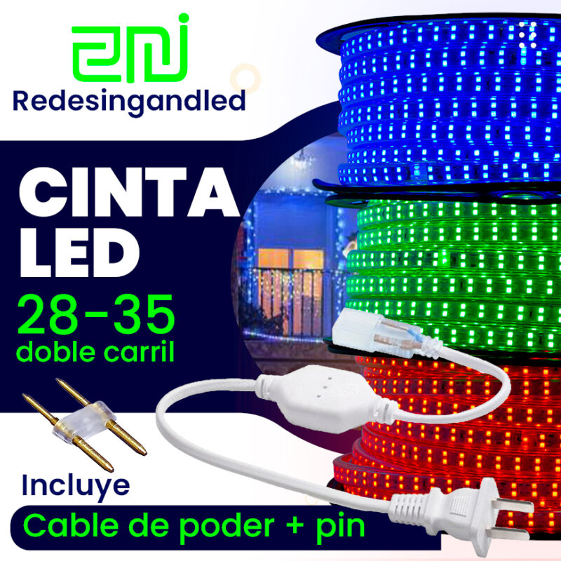 Cinta LED 10W – 2835 – IP65 – 180 LEDS, 110V – X 10 Mt Exterior Cable+grapas+pin+tapon