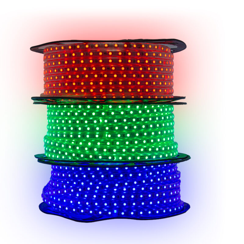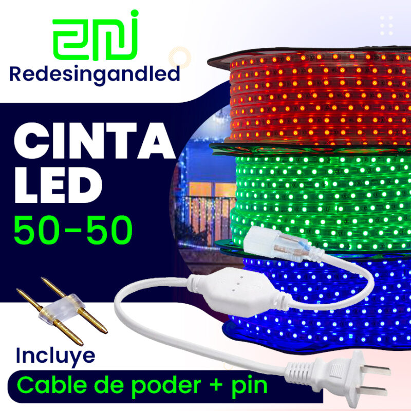 Cinta LED 8W – 5050 – IP65 – 60 LEDS, 110V – X 10 Mt Exterior Cable+grapas+pin+tapon