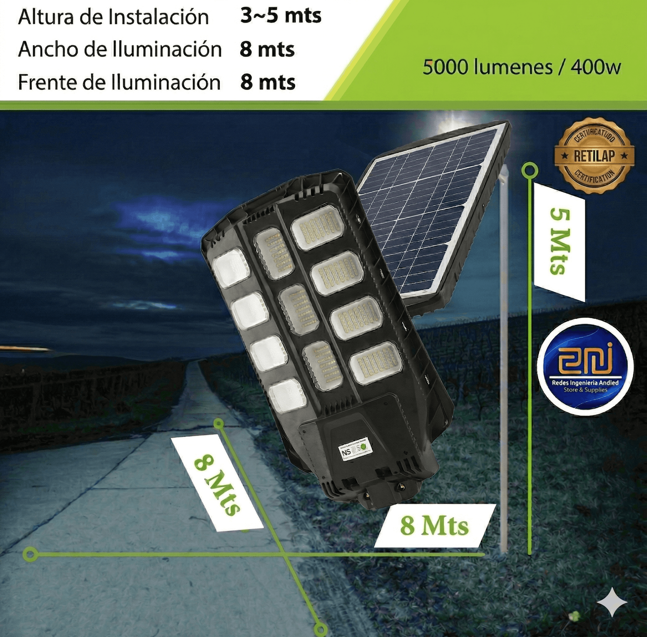 Descubre la solución perfecta en iluminación exterior con nuestra lámpara solar LED de alto rendimiento, diseñada para brindar máxima eficiencia, ahorro energético y seguridad en cualquier entorno.